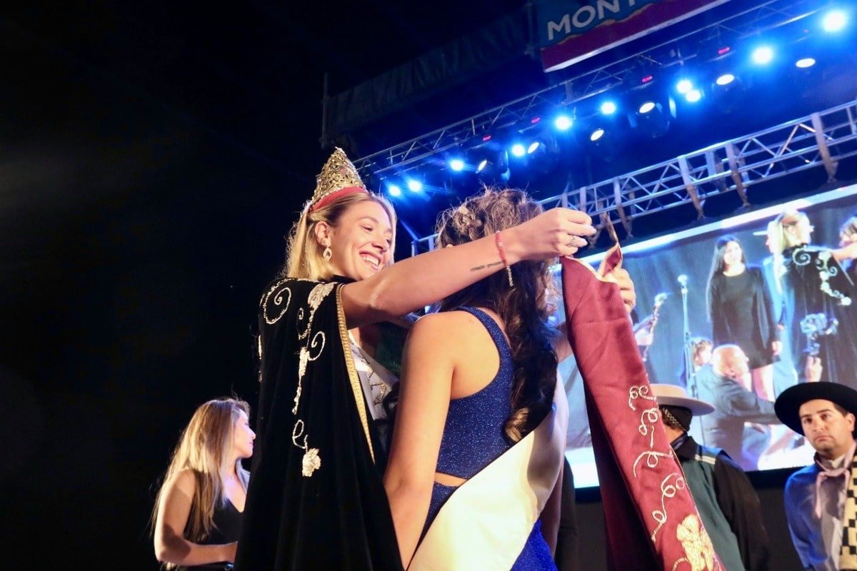 Uno de los momentos más esperados de la noche fue la proclamación de la nueva representante montecomanina: Andrea Leiva, de 23 años, será quien porte los atributos del distrito durante el próximo año. En este caso fue coronada por la actual representante departamental, Sol Indiveri.