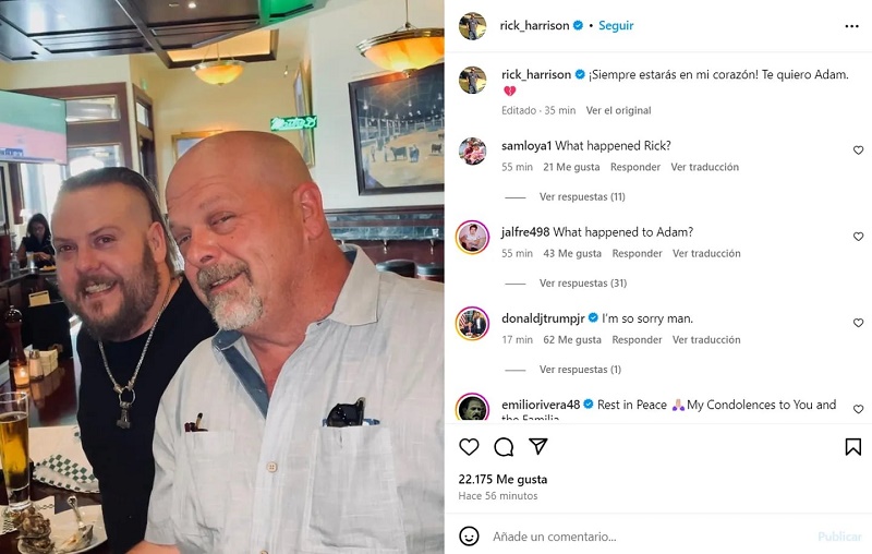“¡Siempre estarás en mi corazón! Te quiero, Adam”, escribió Rick Harrison en su cuenta tras conocerse la noticia. La publicación superó los 20 mil “me gusta” en tan solo 30 minutos y sus seguidores le mandaron fuerzas a través de los comentarios.