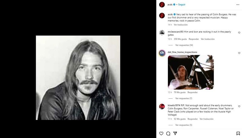 Desde la cuenta oficial de Instagram del grupo liderado por Angus Young le dedicaron un sentido mensaje de despedida a su compañero. “Muy triste escuchar sobre la muerte de Colin Burgess. El fue nuestro primer baterista y un músico muy respetado”, escribieron.