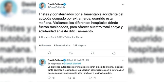 “Tristes y consternados por el lamentable accidente del autobús ocupado por extranjeros, ocurrido esta mañana”, expresó el Ministro de Turismo de la República Dominicana en medio de la conmoción por el trágico accidente donde murieron dos argentinas. “Visitamos los diferentes hospitales dónde fueron trasladados, para ofrecer nuestro total apoyo y solidaridad en este difícil momento”, indicó.