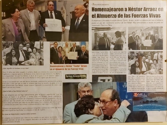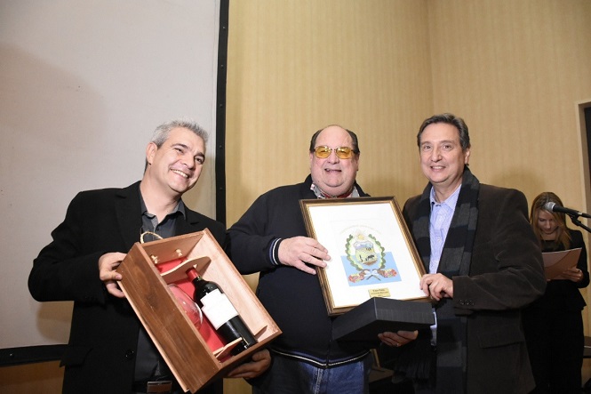 | Cacho Arraes junto al Director de Turismo y el Intendente de San Rafael recibiendo una distinción por su enorme trabajo |