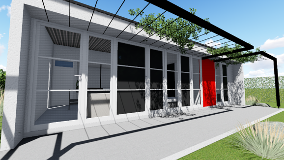 En verano, la protección y control solar se logra mediante piezas envolventes aisladas térmicamente, aleros y una pérgola con vegetación de especies caducas. Y el enfriamiento se produce mediante la incorporación de aventanamiento que permite ventilación cruzada para renovación del aire.