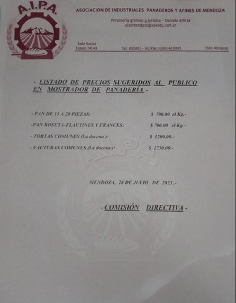 La Cámara de Empresarios Panaderos de Mendoza (CEPA) fue quien lo informó, el incremento interanual es del 62%. El dos de junio fue el aumento anterior de los panificados.