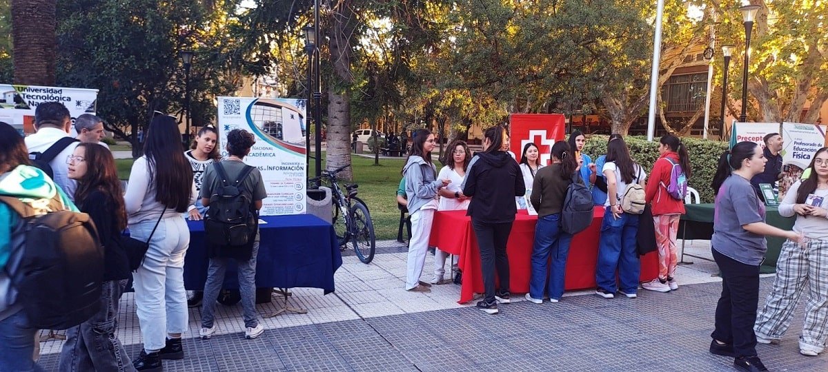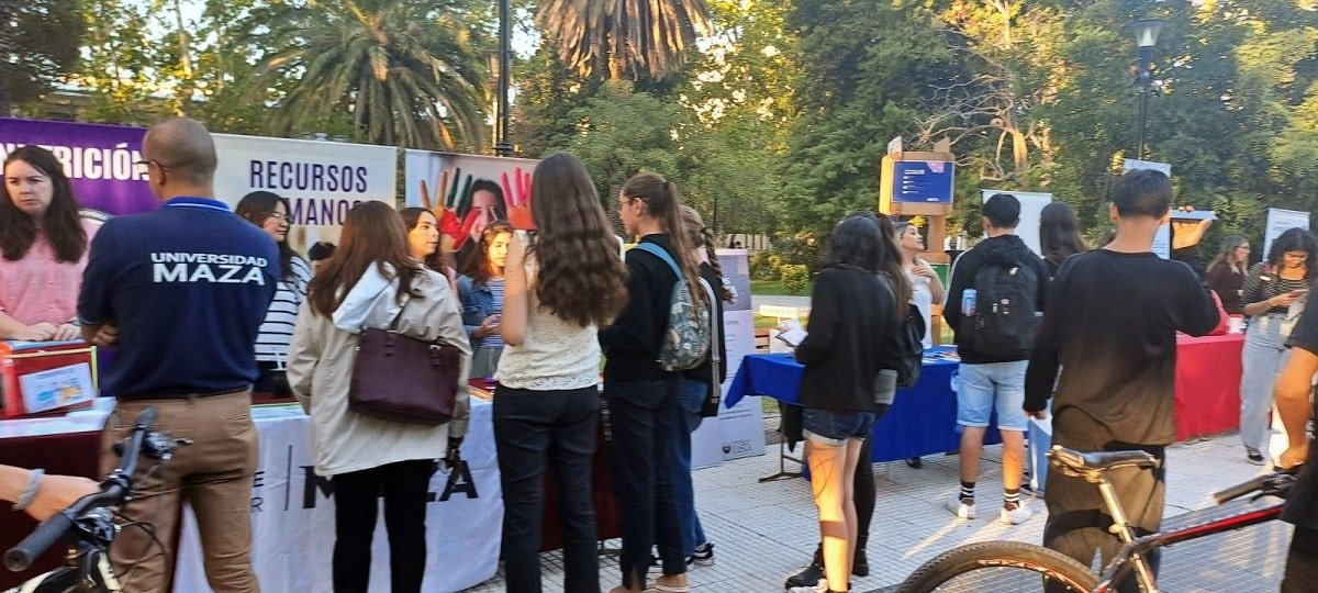 Cientos de jóvenes se acercan -de 17 a 21- hasta la Plaza San Martín para conocer las más de 100 carreras universitarias y terciarias que se dictan en San Rafael entre instituciones públicas y privadas.