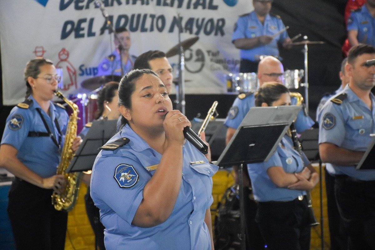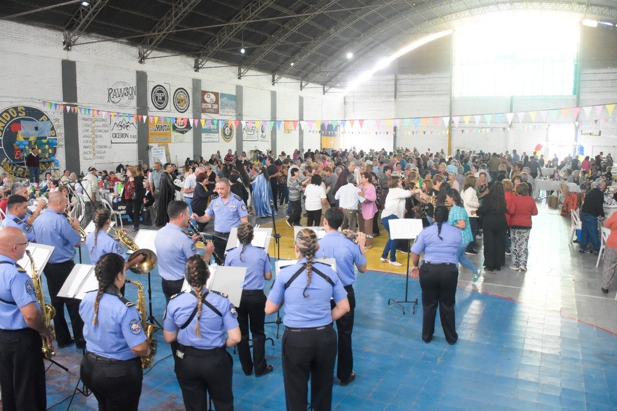 El festejo por el Día del Adulto Mayor comenzó con la Banda de la Policía, interpretando temas que convirtieron en una verdadera pista de baile las instalaciones del club de Pueblo Diamante.