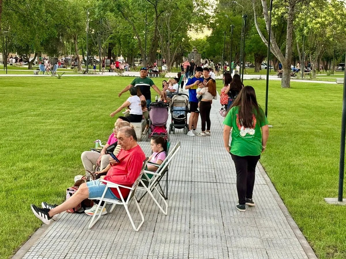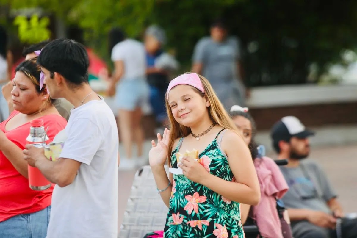 Tras el desate de cintas, la plaza Arizu se convirtió en el principal punto de encuentro de los villaatuelinos, que este domingo tuvieron un amplio paseo comercial con foodtrucks y vendedores de diferentes productos.