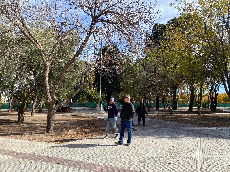Omar Félix visitó la obra de la plaza y el parque infantil de Villa Atuel que avanzan hacia su inauguración