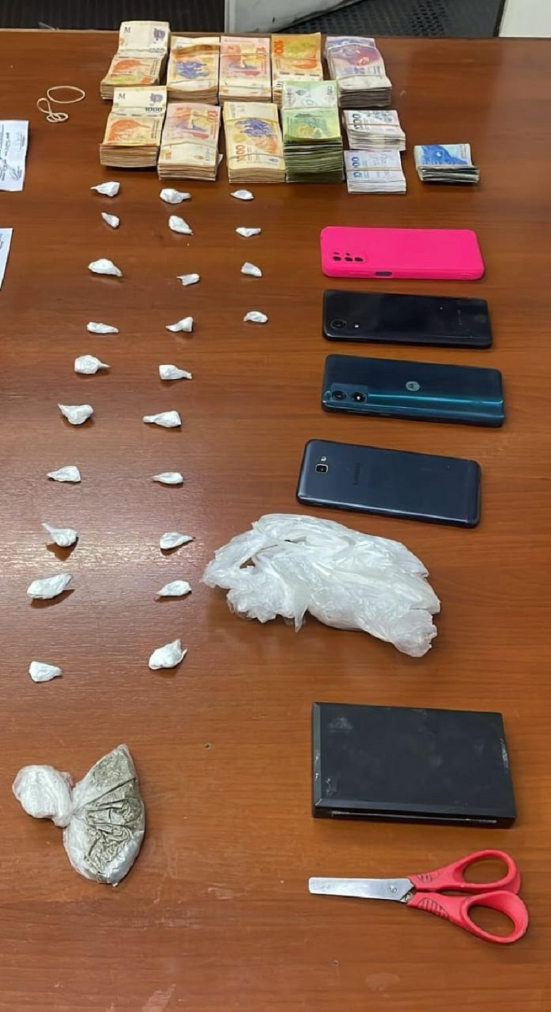 En el segundo allanamiento, realizado en el Barrio Las Rosas de Las Heras, se detuvo a P. F. M. F. A(31)y se secuestró: