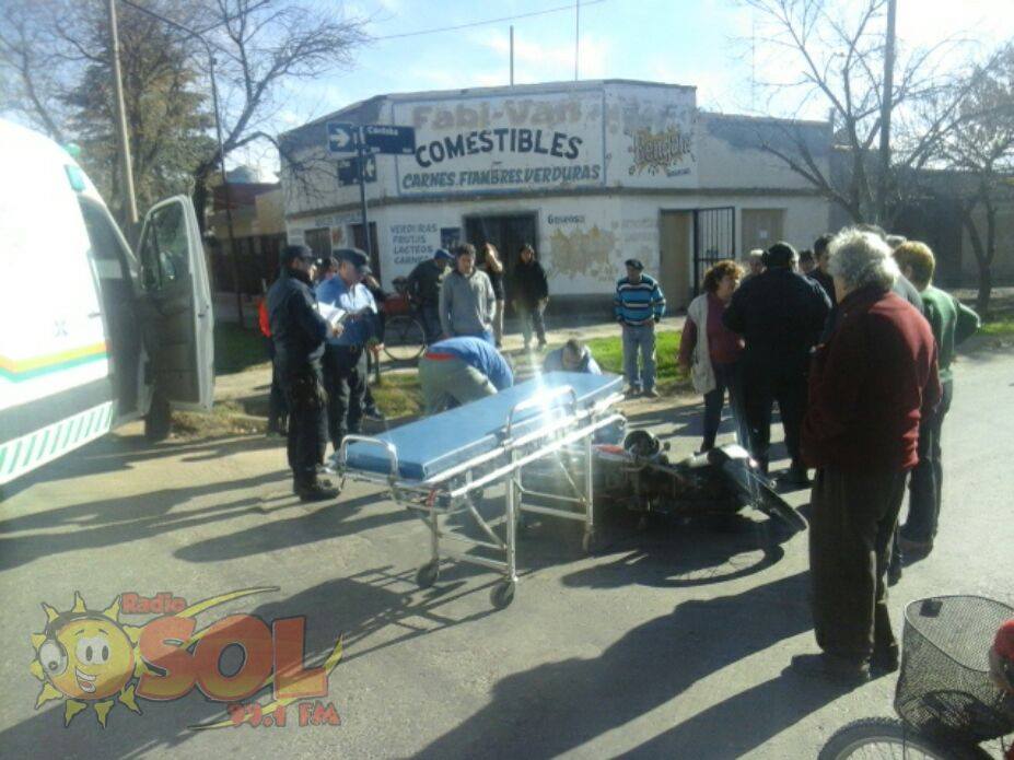 Casi todos los días, lamentablemente tenemos en nuestro departamento un accidente vial en el que se ve involucrado un motociclista. En este caso se trata de una moto Corven 110 cc conducida por un joven llamado Ariel Rosales, la cual fue embestida por causas que se tratan de establecer por un automóvil Peugeot 505 Rural en la esquina de las calles Juan José Paso y Córdoba.
