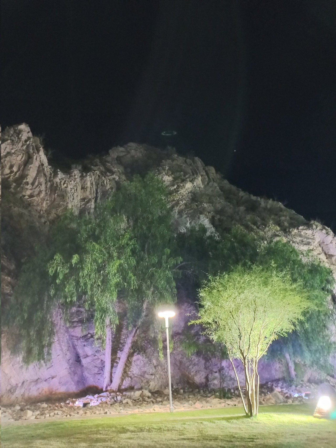 En la fotografía, puede verse claramente a un objeto de forma circular que flota cerca del cerro ubicado en el nuevo parque sanjuanino, llamado La Quebrada.