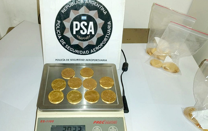 A través de los escáneres de rayos X, los efectivos observaron formas de gran densidad en el equipaje de un hombre de 53 años, no pudiendo determinar de qué se trataba. Por este motivo se le solicitó que exhibiera el contenido, y encontraron que en su morral llevaba 87 monedas chilenas de oro; 17.800 dólares; 158.900 pesos y 8.000 pesos chilenos; mientras que en su valija había 20 monedas de oro más, contabilizando en total 107. Si se estima que cada pieza está valuada en aproximadamente 220.000 pesos, estaría transportando oro por un valor de 23.540.000 pesos.
