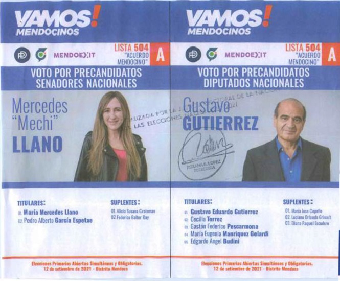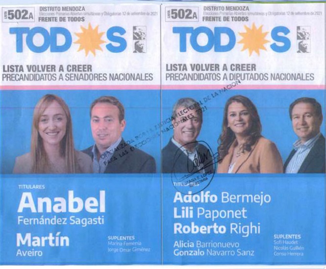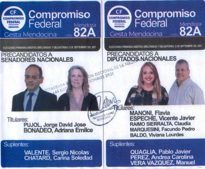 La Justicia Electoral oficializó las boletas de los precandidatos a senadores y diputados nacionales de Mendoza que competirán en las elecciones Primarias, Abiertas, Simultáneas y Obligatorias (PASO) del 12 de septiembre.