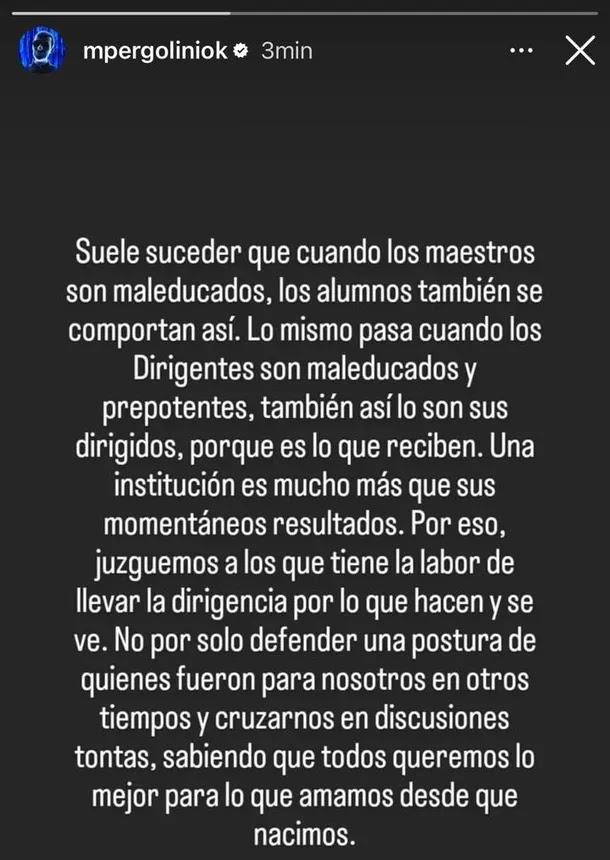 “Cuando los dirigentes son maleducados y prepotentes, también así son sus dirigidos, porque es lo que reciben”, escribió el empresario en clara referencia a los integrantes del Consejo de Fútbol con los que mantiene una fuerte enemistad tras su salida del club.