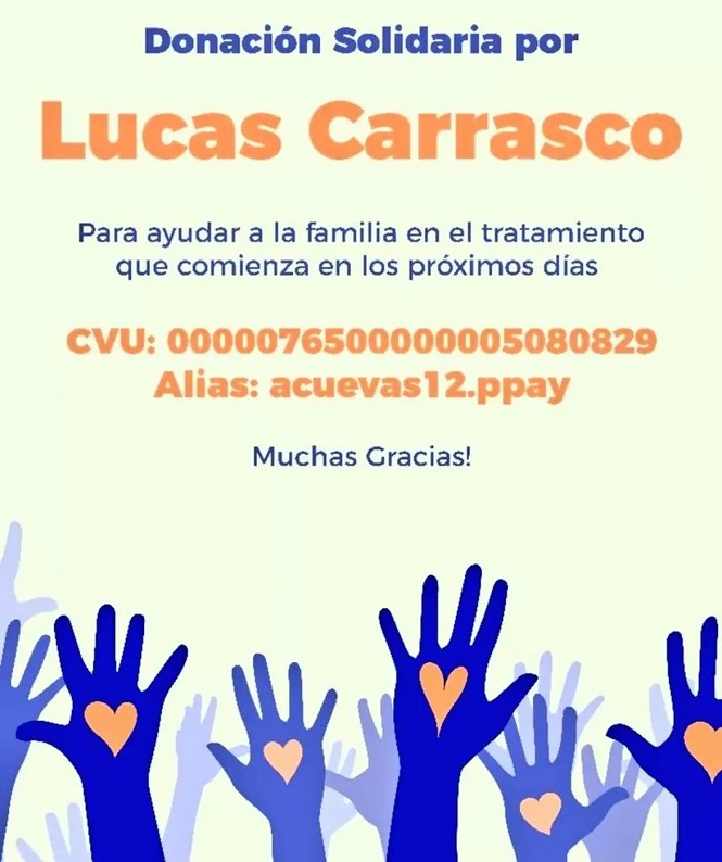 “Quienes deseen colaborar con la causa pueden hacerlo a través del CBU: 0000076500000005080829 o al alias: acuevas12.ppay”, dice el flyer de redes sociales.