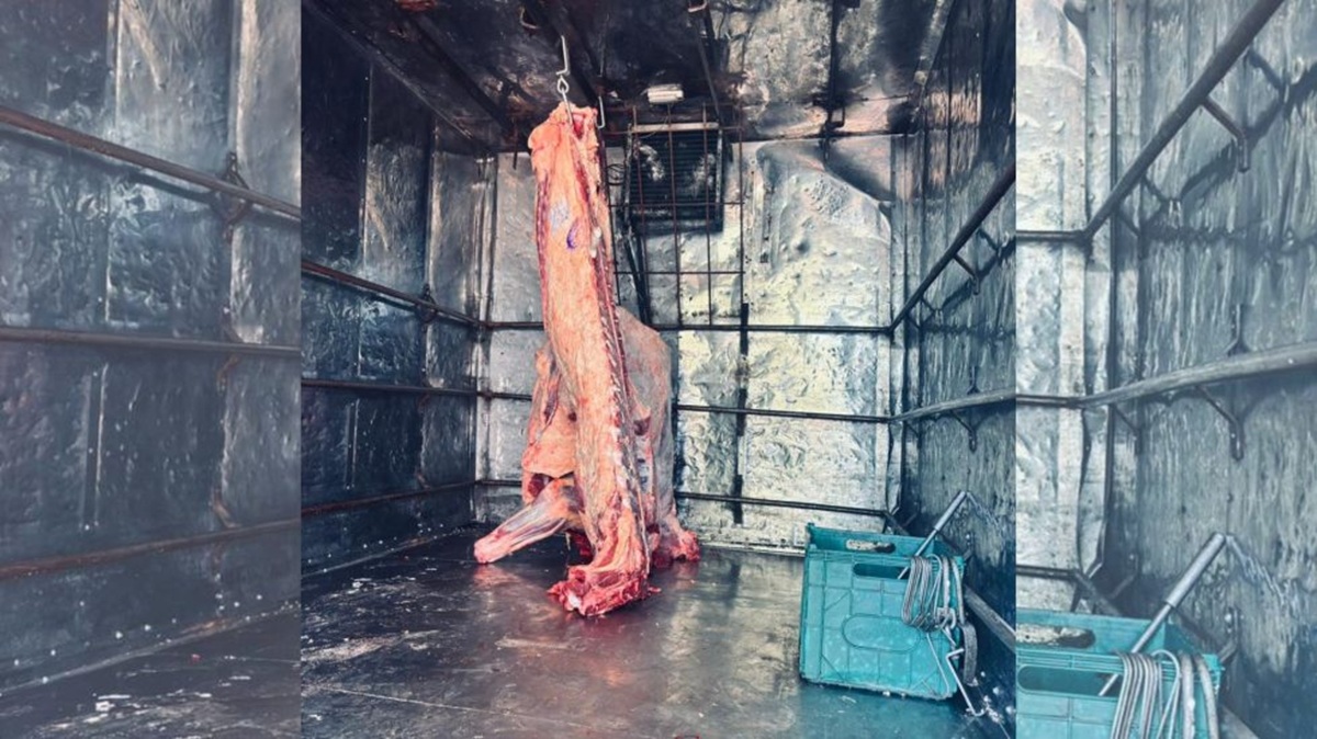 El segundo procedimiento se desarrolló en la intersección de calle Chaco y Tierra del Fuego, donde se controló un camión marca Mercedes Benz perteneciente a un frigorífico habilitado. Al momento de la inspección, se constató que transportaba una media res y un cuarto en condiciones inadecuadas, ya que la carne se encontraba en contacto con el suelo del habitáculo y el vehículo carecía de equipo de frío y de habilitación vigente para el transporte de sustancias alimenticias.