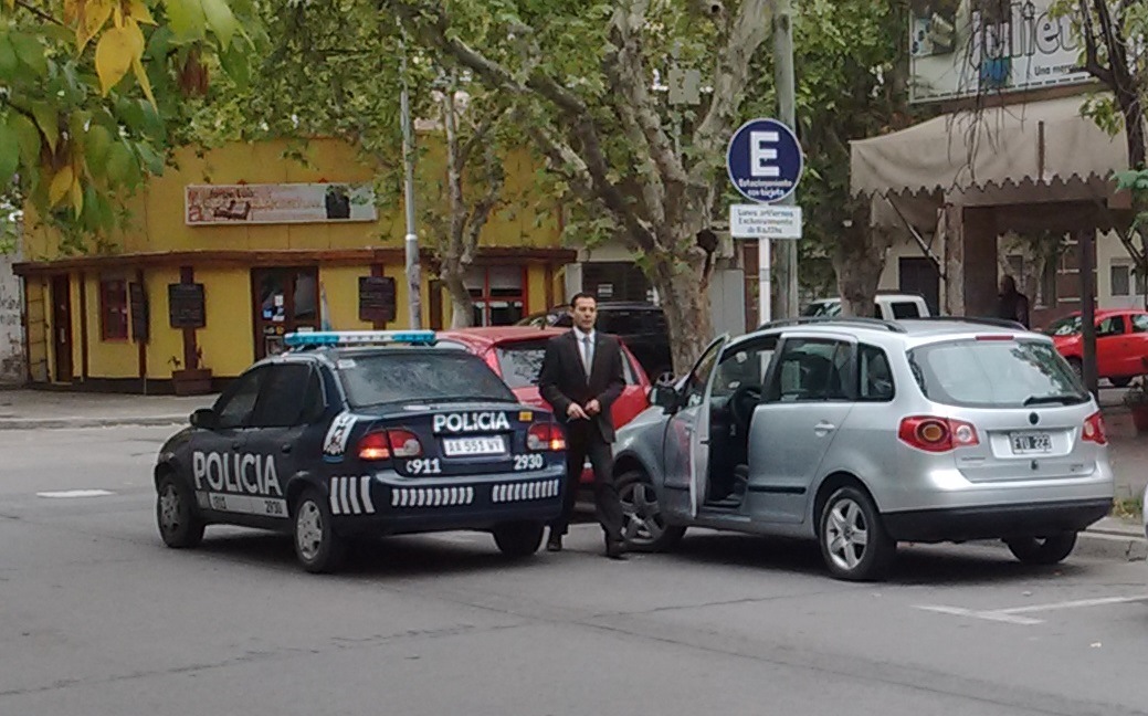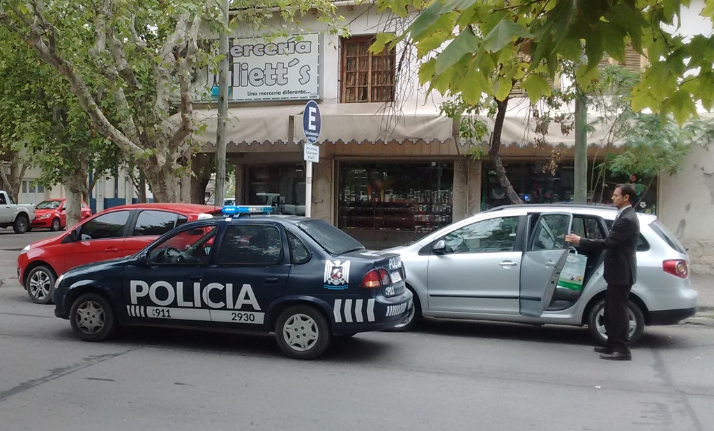 Un hombre que estaba estacionado y que necesitaba marcharse, tuvo que pedirle al policía que iba en el lugar de acompañante, que por favor moviera el móvil para poder salir (tal como se observa en la imagen).