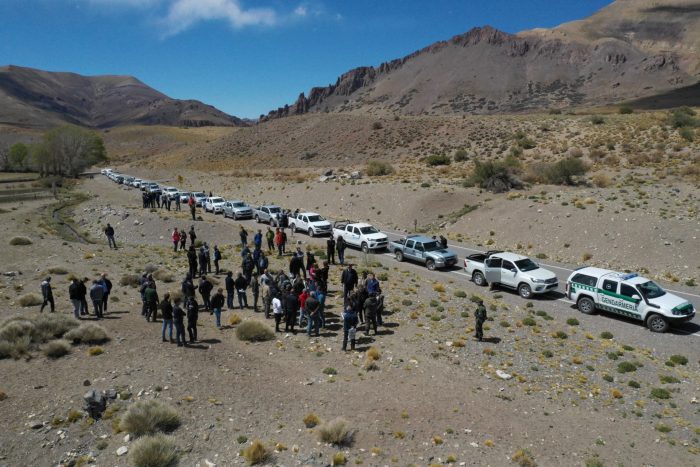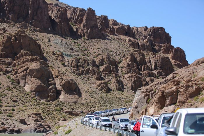 El contingente partió a las 9 de la mañana desde la Municipalidad de Malargüe y tuvo cinco paradas. La primera fue en un puesto de Gendarmería, en el cruce de la confluencia del río Potimalal con el Río Grande, que será el que alimentará la presa.