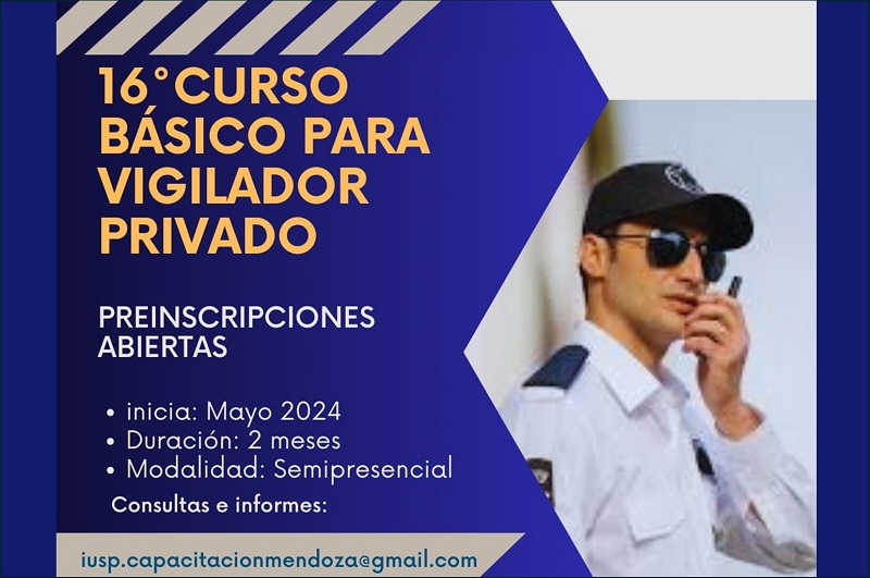 El curso será dictado en las cuatro sedes del IUSP con modalidad semipresencial (80% virtual, 20% presencial). Tiene duración de dos meses y se otorga certificado habilitante para solicitar la credencial en el Registro Provincial de Empresas Privadas de Vigilancia (REPRIV).