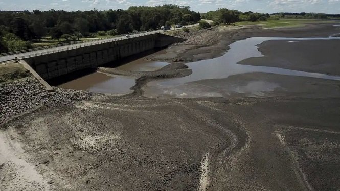 La represa de Paso Severino, de donde se extrae el agua dulce, llegó hoy a su mínimo histórico y sus reservas apenas alcanzaron a 3,5 millones de metros cúbicos.