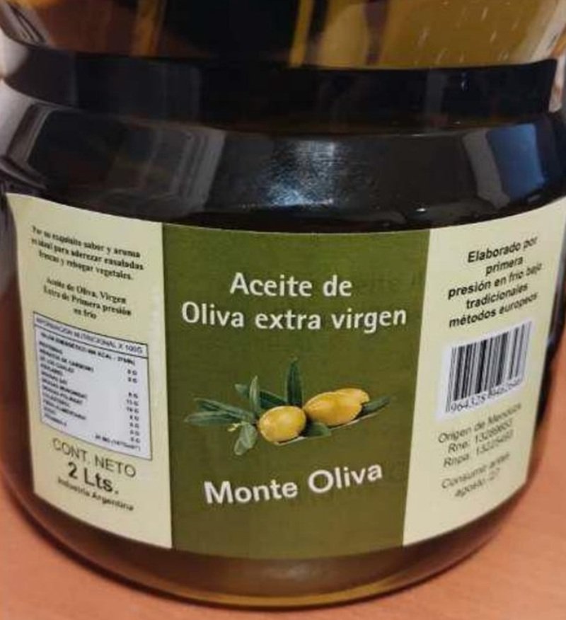 La investigación se inició a raíz de una denuncia presentada ante el Instituto Nacional de Alimentos (INAL), tras detectarse la venta de un producto identificado como “Aceite de Oliva Extra Virgen marca Monte Oliva – Cont. Neto 2 Lts., Consumir antes de AGO/27, RNE: 13289653 – RNPA: 13225493, Origen Mendoza”.