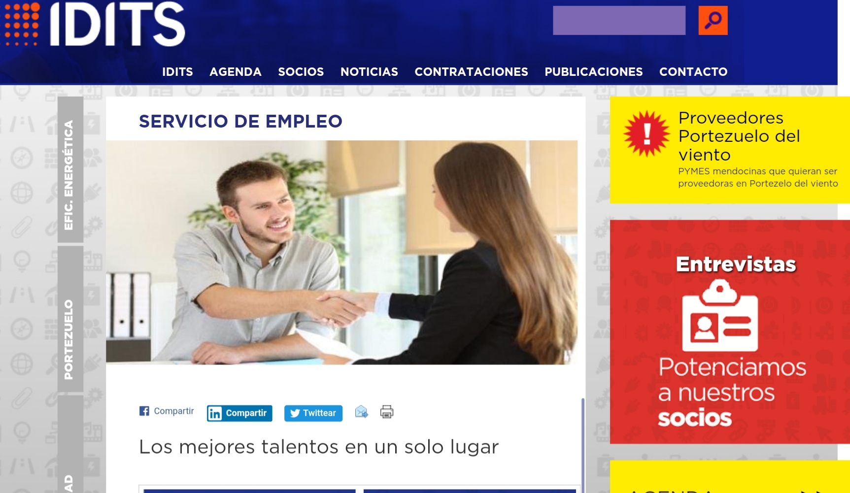 Las empresas que busquen personal pueden contactarse a través del sitio del IDITS www.idits.org.ar, completando, en la sección de Servicio de Empleo, un formulario para ser contactado por personal del servicio, telefónicamente al 261 5244834 y 261 6618939 o por correo a [email protected].