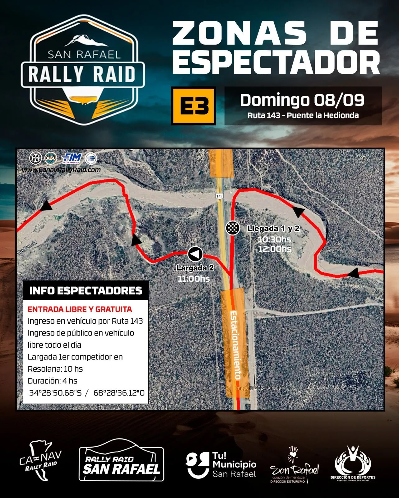 Desde la organización informaron las zonas de espectadores que se han dispuesto para seguir cada una de las tres etapas que componen la fecha sanrafaelina de la competencia.