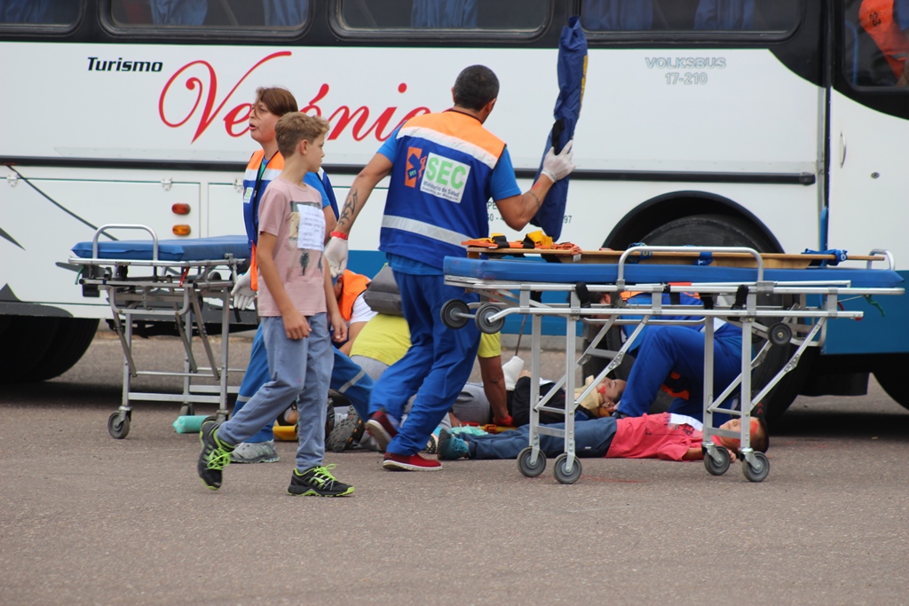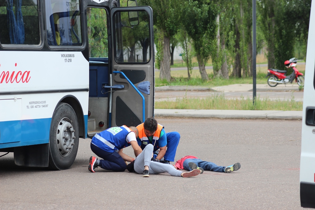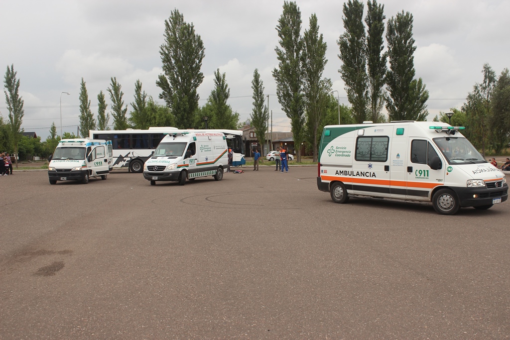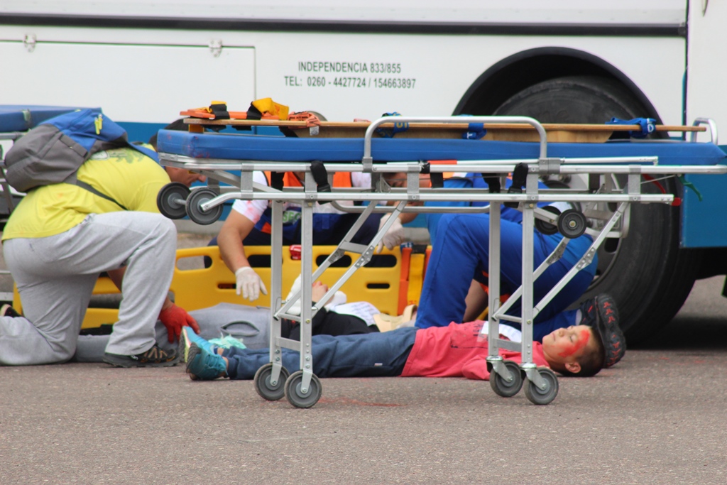 A modo de cierre, se simuló un accidente del que participó un colectivo y se suponía que las ambulancias y los profesionales participantes, debían trabajar con los heridos y realizar el traslado a centros de salud.