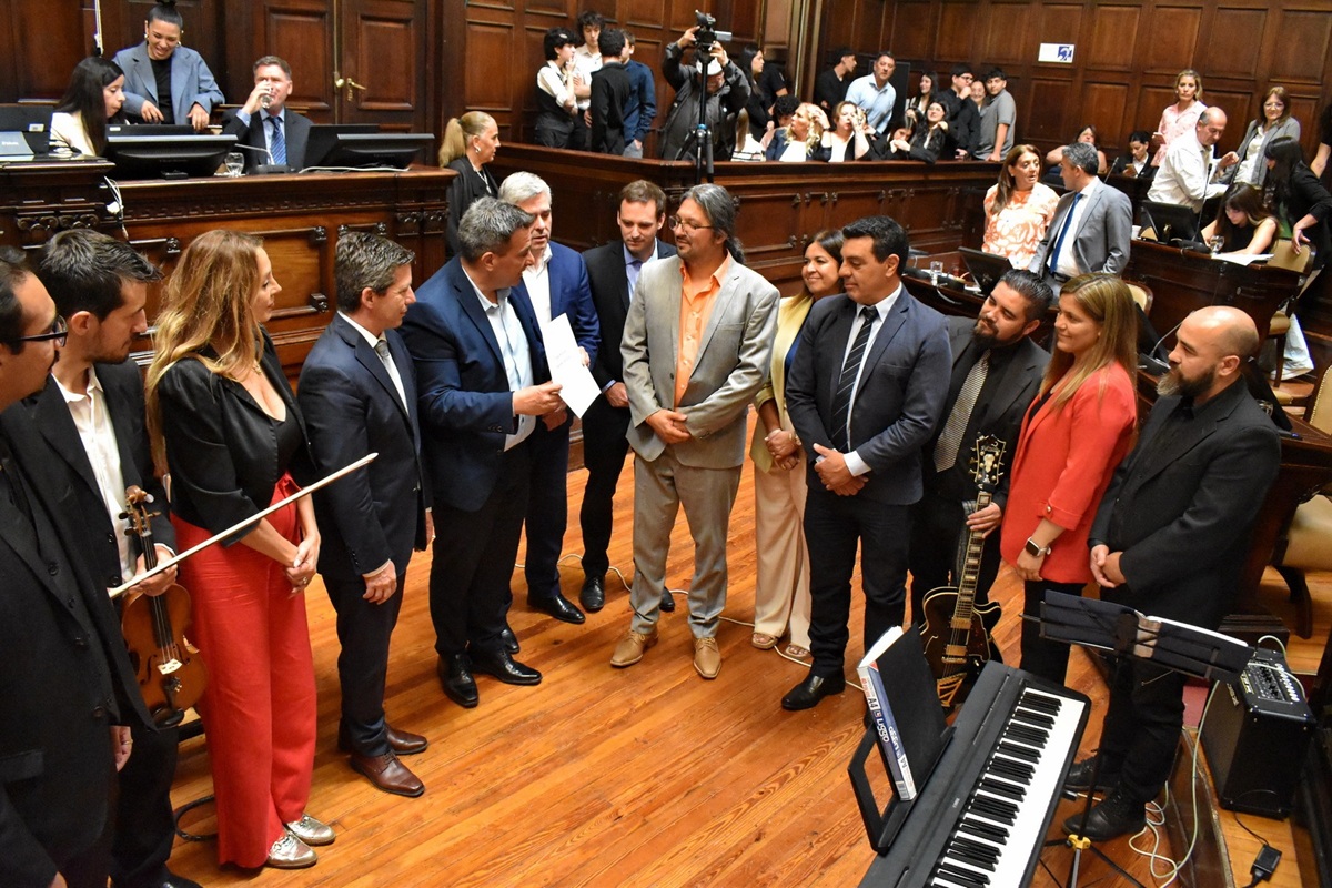 El diploma y la Resolución que dio origen a la declaración de interés legislativo, fue entregada a los integrantes de la Orquesta precisamente en el recinto de sesiones, distinguiendo de esta forma su “valioso aporte a la difusión de la música, la formación de nuevos talentos y la promoción del patrimonio cultural mendocino”.