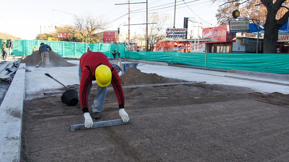 Porque el primer amor de los turistas pasa por los ojos, los obreros ya están terminando de colocar las piezas de hormigón articulado en el tramo de la avenida Yrigoyen, en el sector que va de Buenos Aires a 9 de Julio.