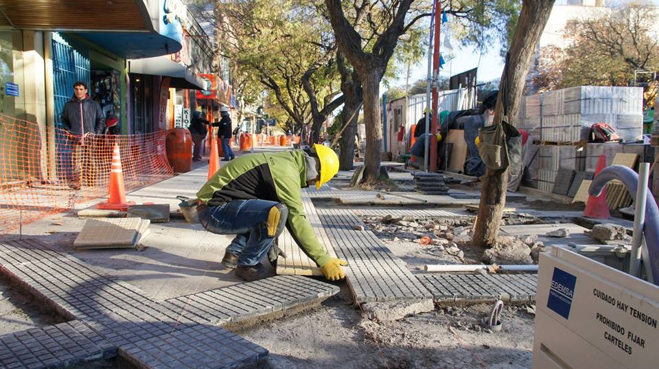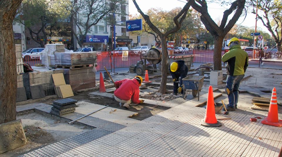 En la primera cuadra (de Almafuerte a Godoy Cruz) ya se están colocando las nuevas baldosas, y en la segunda (desde Godoy Cruz a Gutiérrez), se están renovando los servicios.