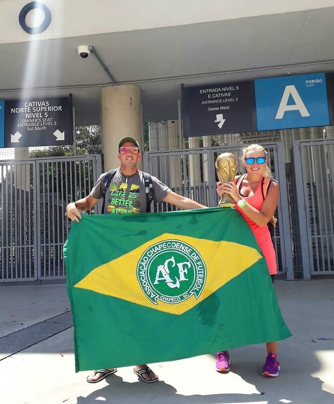 Problemas en la administración tras los Juegos Olímpicos de 2016 hicieron que estuviera cerrado al público para la visita guiada. Nos retratamos en la puerta de ingreso sosteniendo una réplica de la Copa del Mundo y una bandera brasileña que recordaba la reciente tragedia del Club Chapecoense cuyos integrantes perecieron en un accidente aéreo en Colombia.