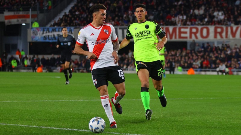 Gran desborde de Esequiel Barco en el inicio del partido, quien apenas puede puntearla para el centro atrás y tras un despeje de la defensa, De La Cruz la clavó al ángulo para el 2 a 1 de River.