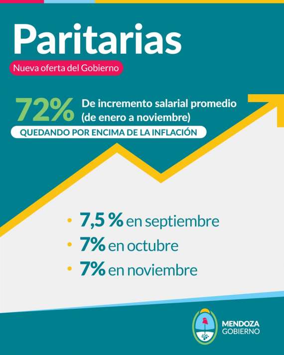 El ofrecimiento fue en tres tramos: 7,5% en septiembre y dos más de 7% en octubre y en noviembre. El Gobierno señaló que la oferta redunda en un aumento del 72% entre enero y noviembre.