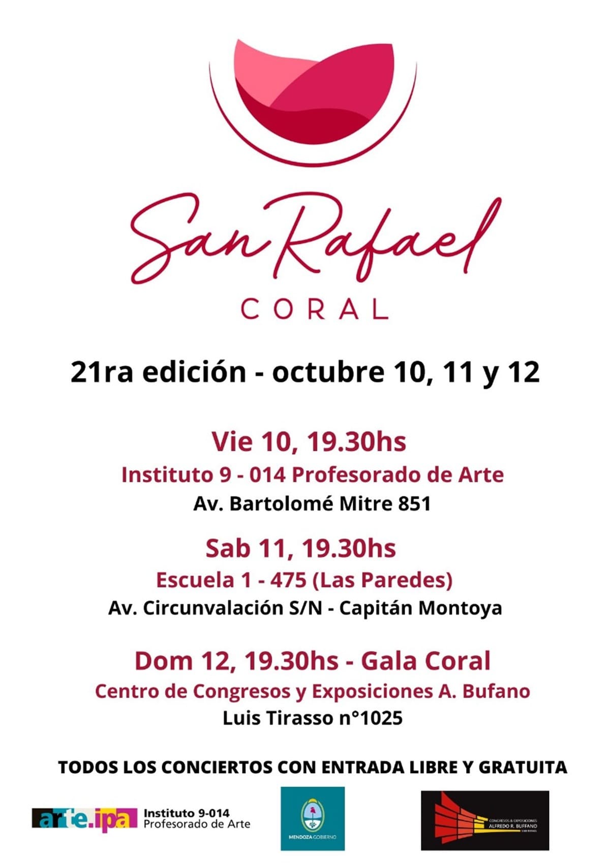 San Rafael Coral, iniciativa cultural nacida en 2017 de la mano del Lic. Juan Ignacio Martí, director de coros de nivel nacional como el de la Ciudad de La Plata y el Coro de la Universidad de Río Cuarto, se prepara para su 21° edición, consolidándose como un referente del canto coral en la región.