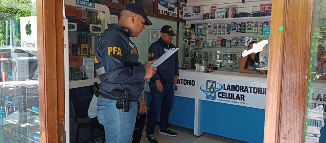 Efectivos de la Policía Federal a cargo del Subcomisario Diego Martín Nieva realizaron un allanamiento en el local de “Laboratorio Celular” ubicado en avenida El Libertador 164 de nuestra ciudad.