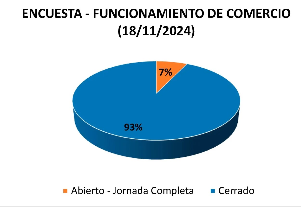 De acuerdo con los resultados de la encuesta, el 93 % de los comercios de San Rafael permanecerá cerrado durante el feriado, mientras que solo el 7 % de los establecimientos abrirá sus puertas en jornada completa.