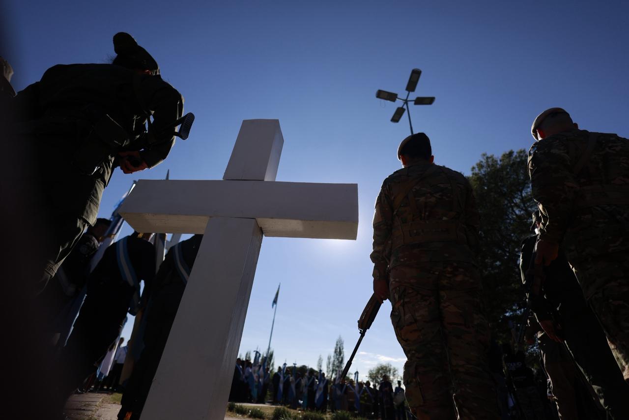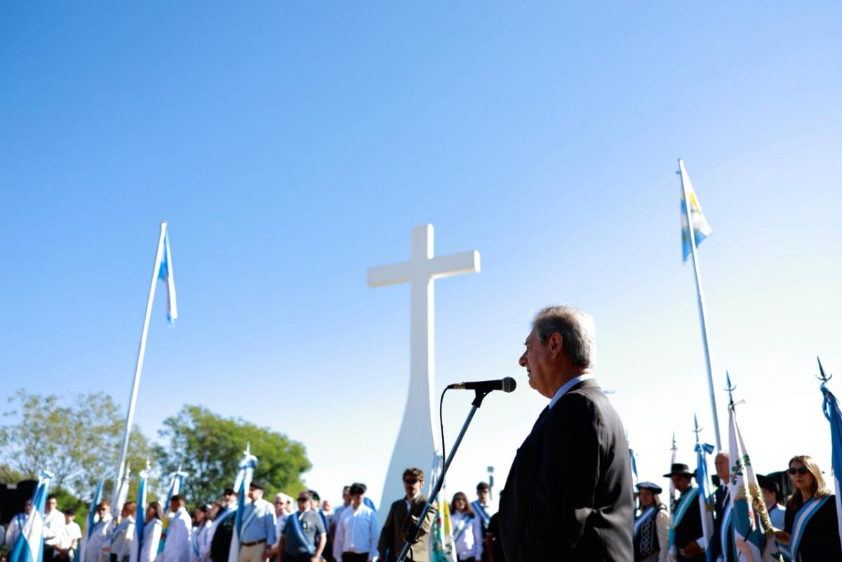 En un emotivo acto en el monumento de la Rotonda del Cristo, San Rafael homenajeó a los Veteranos y Caídos en la Guerra de Malvinas.