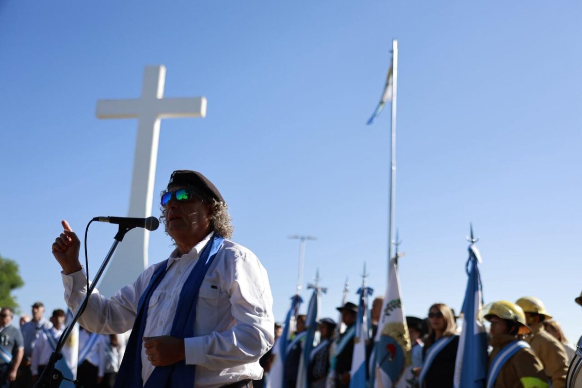 Tras entonar las estrofas del Himno Nacional Argentino y colocar una ofrenda en homenaje a los caídos, Héctor “Tachi” Flores Veterano del Crucero ARA General Belgrano, remarcó el acompañamiento de los sanrafaelinos.
