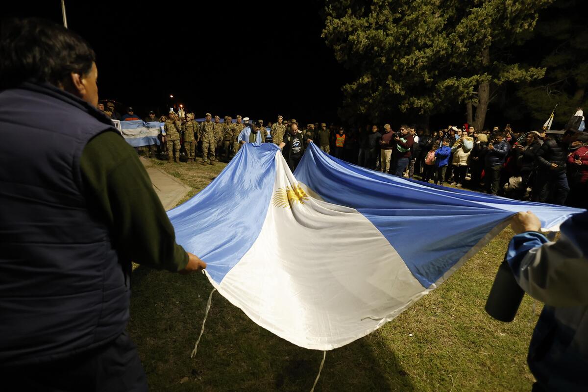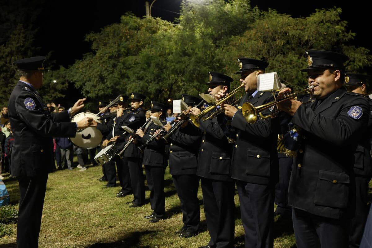 Ya en el Monumento a los Caídos y llegadas las doce la noche, la Banda de Música de la Policía interpretó el Himno Nacional Argentino y luego la Marcha de Malvinas, en medio de un sentimiento patriótico que le fue común a todos los presentes.