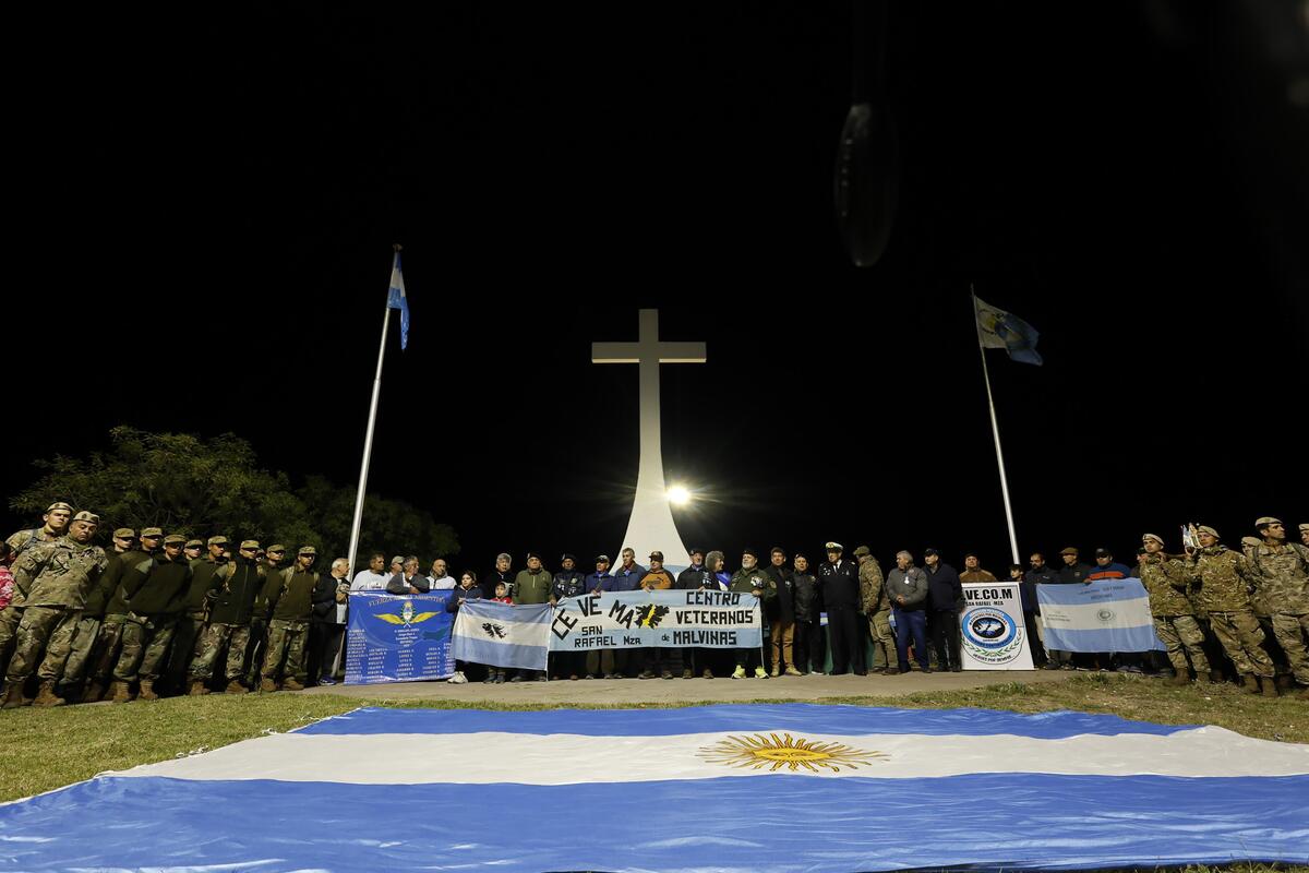 Un año más, la víspera del 2 de abril, día en que se conmemora un nuevo aniversario de la Guerra de Malvinas ocurrida en 1982, fue sinónimo de caminata y vigilia de cientos de sanrafaelinos junto a Veteranos.