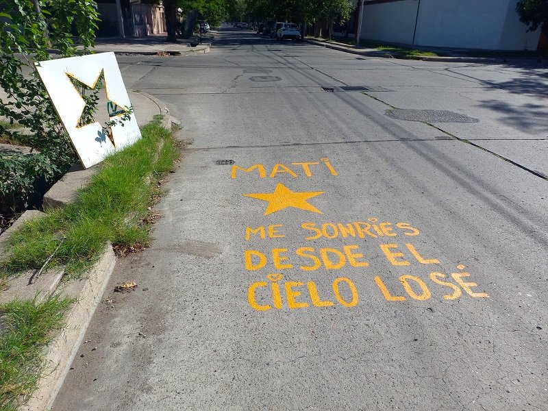 En cumplimiento de una ordenanza vigente en San Rafael desde 2010, este viernes se llevó a cabo la pintura de una estrella amarilla en la intersección de calles Bombal y Salta, donde Matías Valdez (20) falleció la madrugada del 16 de febrero de 2019 en un trágico accidente.
