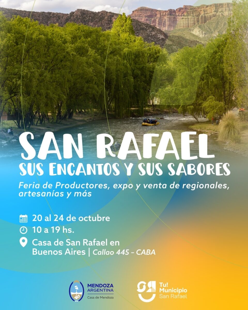 Una de ellas será en la Ciudad Autónoma de Buenos Aires. En el corazón del microcentro porteño se llevará a cabo la jornada “San Rafael, Sus encantos y Sus Sabores”, una feria que reúne a productores, emprendedores y artesanos del sur mendocino.