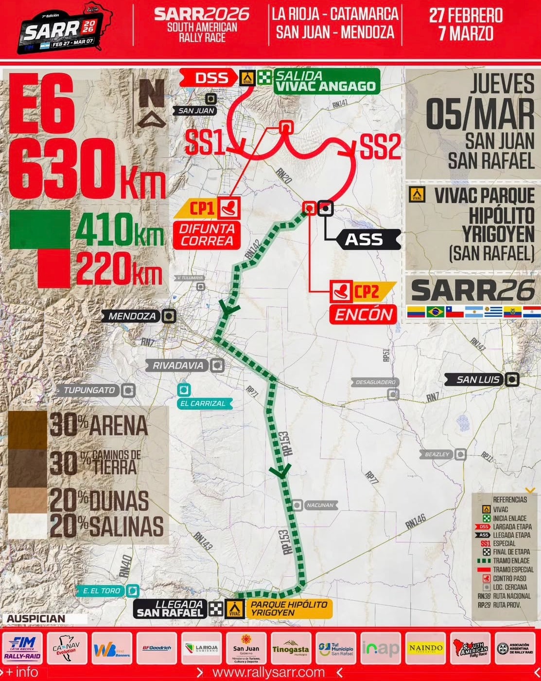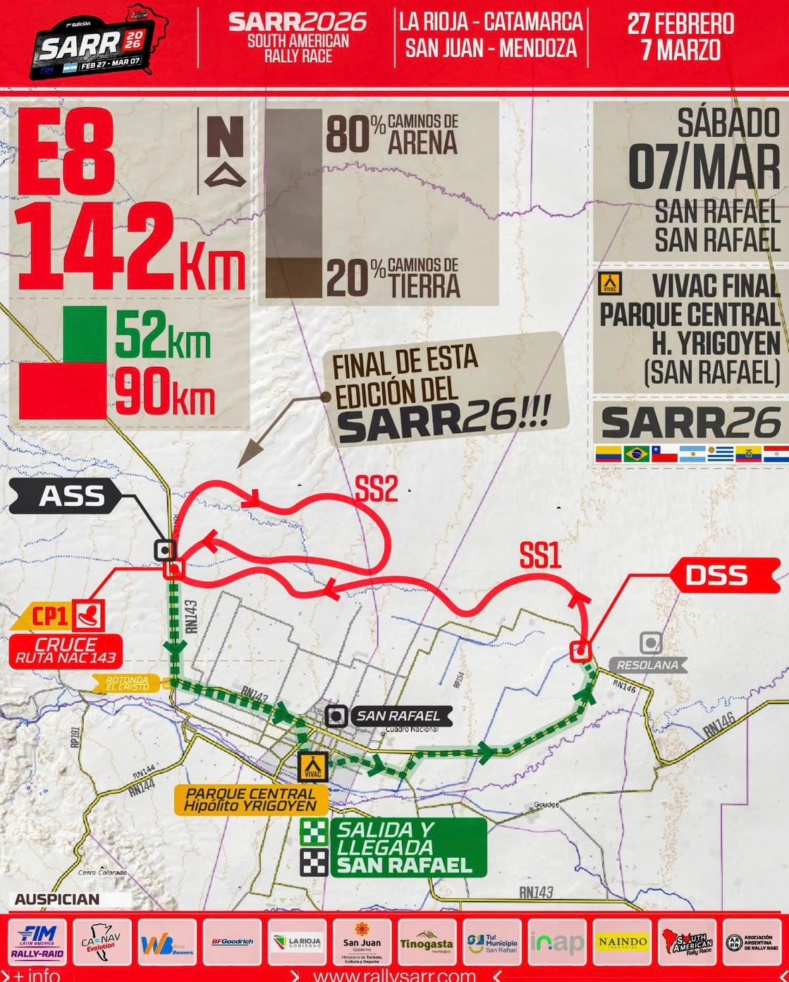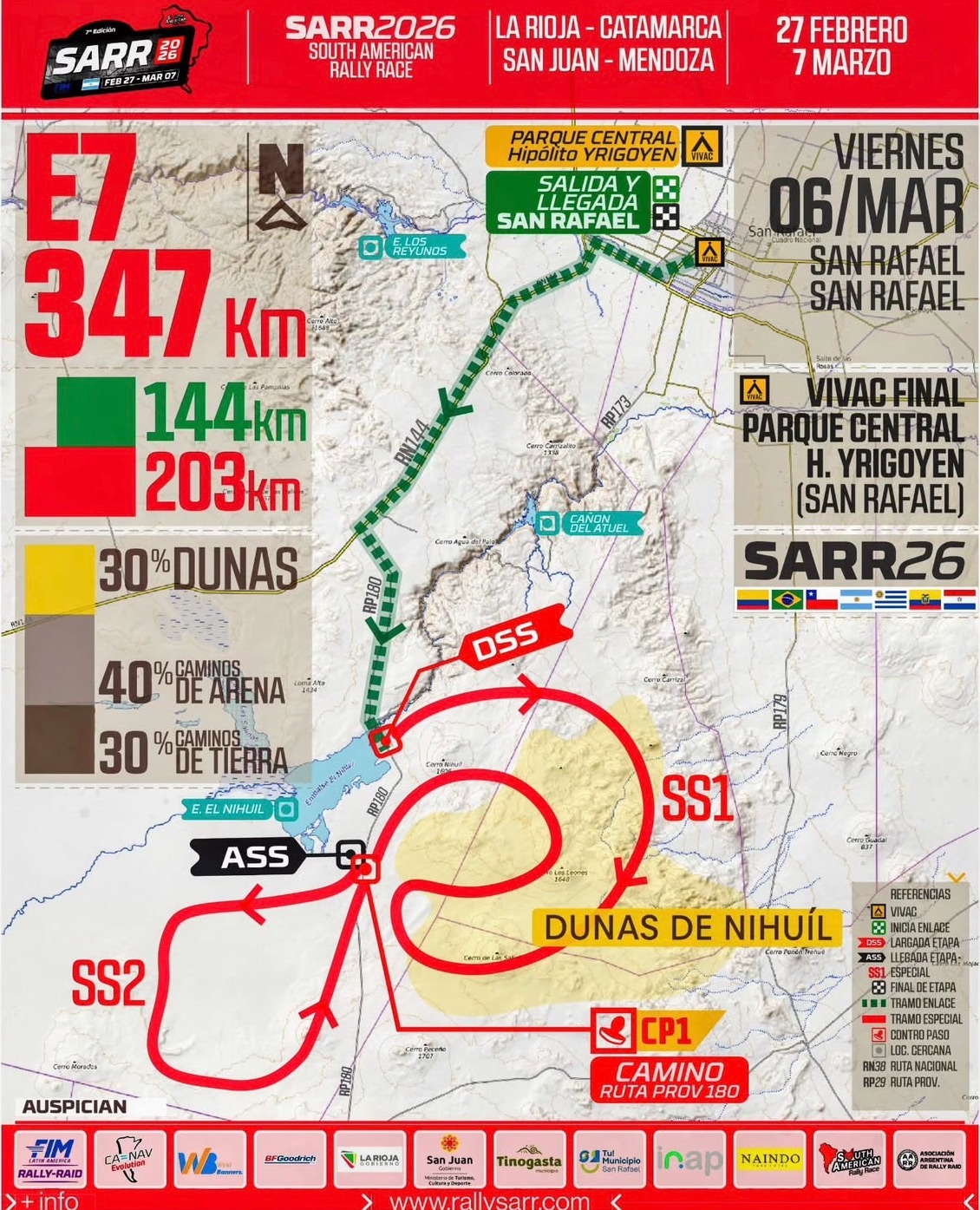 El viernes 6 será una etapa plenamente sanrafaelina de 347 entre enlace y especial, la cual tendrá un importante desarrollo en la zona de las dunas de El Nihuil y con cierre en el Vivac, que contará con entrada libre y gratuita para quienes quieran visitarlo.