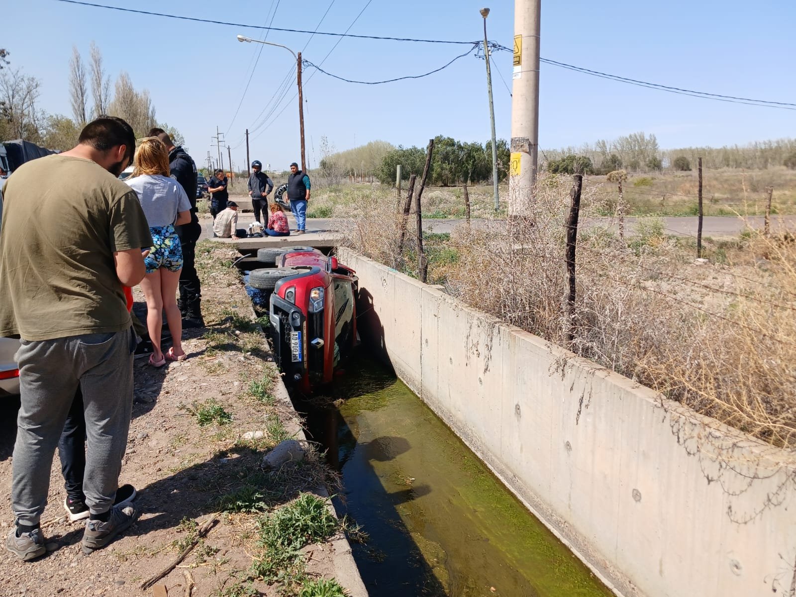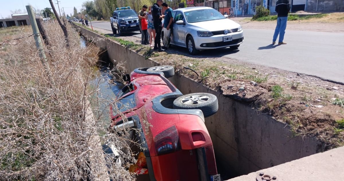 A las 12:50 hs de hoy, en la intersección de las calles Alberdi y Chubut, se produjo un accidente vial cuando un hombre perdió el control de su vehículo y cayó a un canal de riego. El siniestro ocurrió mientras una pareja circulaba por la zona. Según los primeros informes, el conductor se descompuso repentinamente, lo que llevó a la pérdida de dominio del auto y su posterior caída al canal.