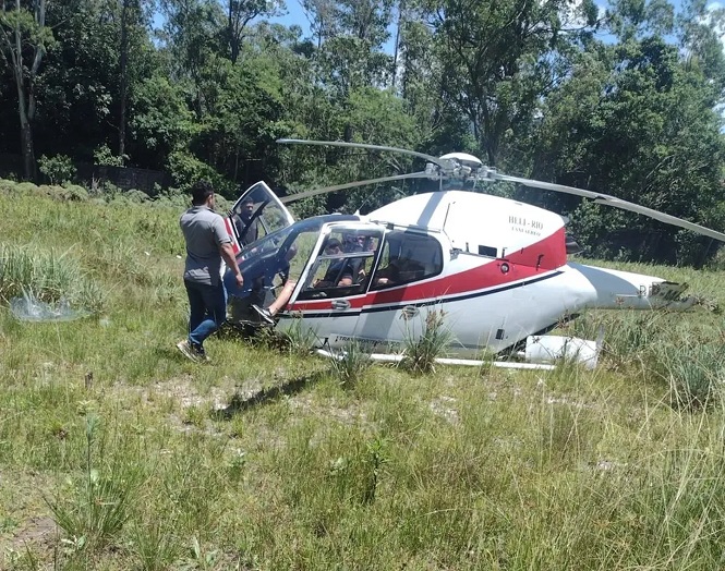El helicóptero de la empresa Heli-Rio se accidentó en la mañana de este miércoles en Recreo dos Bandeirantes, en la zona oeste de Río. La aeronave cayó en un terreno baldío.