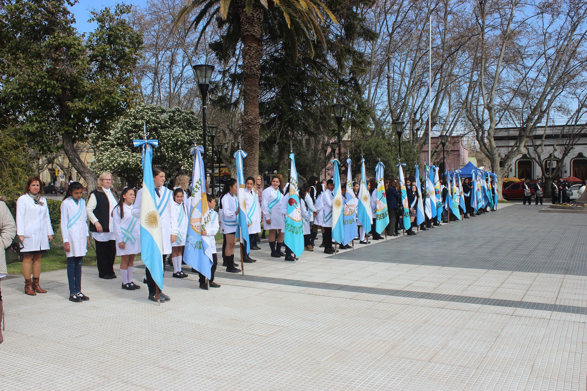 Tras la parte protocolar, que incluyó la entrega de una ofrenda floral a un busto de Sarmiento y a una estatuilla de la Virgen del Carmen, los más chiquitos deleitaron a los presentes con algunas teatralizaciones y bailes.