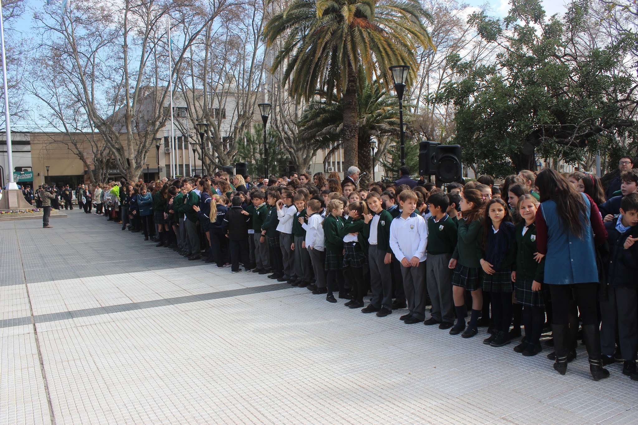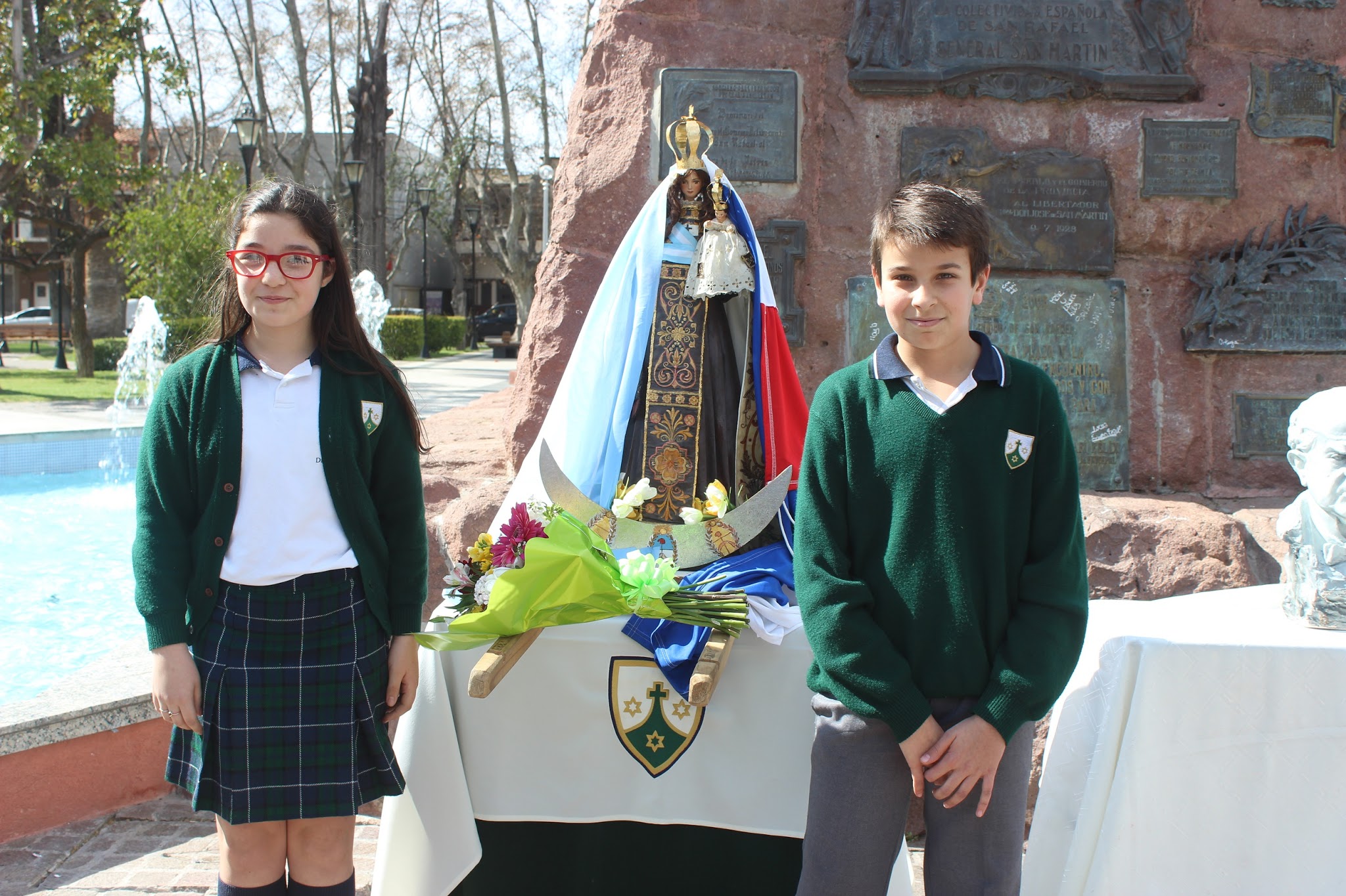Este viernes en la plaza San Martín, se reunieron alumnos de escuelas de todo el departamento para rendir homenaje a los maestros, cuyo día se celebra el lunes. Además, se rindió homenaje a la Virgen. Cabe recordar al respecto, que don José de San Martín declaró Generala del Ejército de los Andes a la Virgen del Carmen de Cuyo, a la que entregó su bastón de mando. La corona le fue ofrecida en ceremonia el 8 de septiembre de 1911, fecha que más tarde se decretaría como Fiesta Patronal de la Provincia.