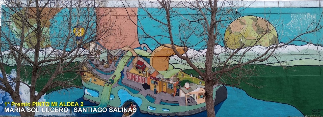 La obra ganadora “A cada paso la vida” corresponde al dúo conformado por María Sol Lucero y Santiago Salinas: Fue pintado en la esquina de la avenida Mitre y Formosa, y refleja dos zapatillas gigantes con pies y – en su interior – se distinguen puntos icónicos del barrio Pueblo Diamante.