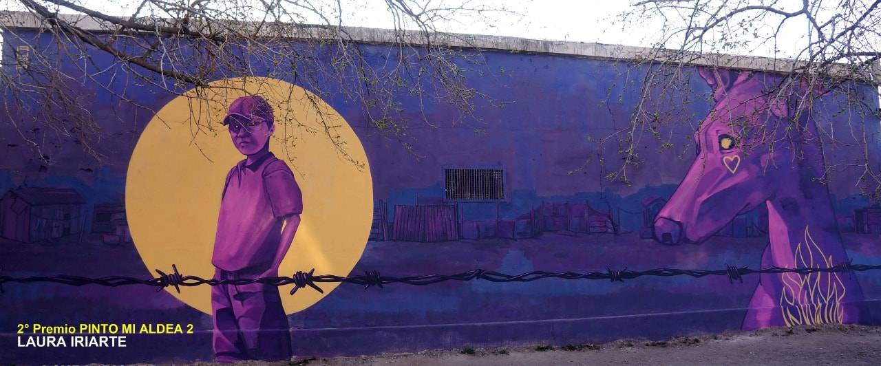 El 2º premio “Otros códigos” fue para el diseño de la artista Laura Iriarte, inmortalizado en la esquina de Chaco y la avenida Mitre. Allí se ve la imagen de un niño enfocado por la luna, una gacela observando la situación, con fondo de construcciones precarias.