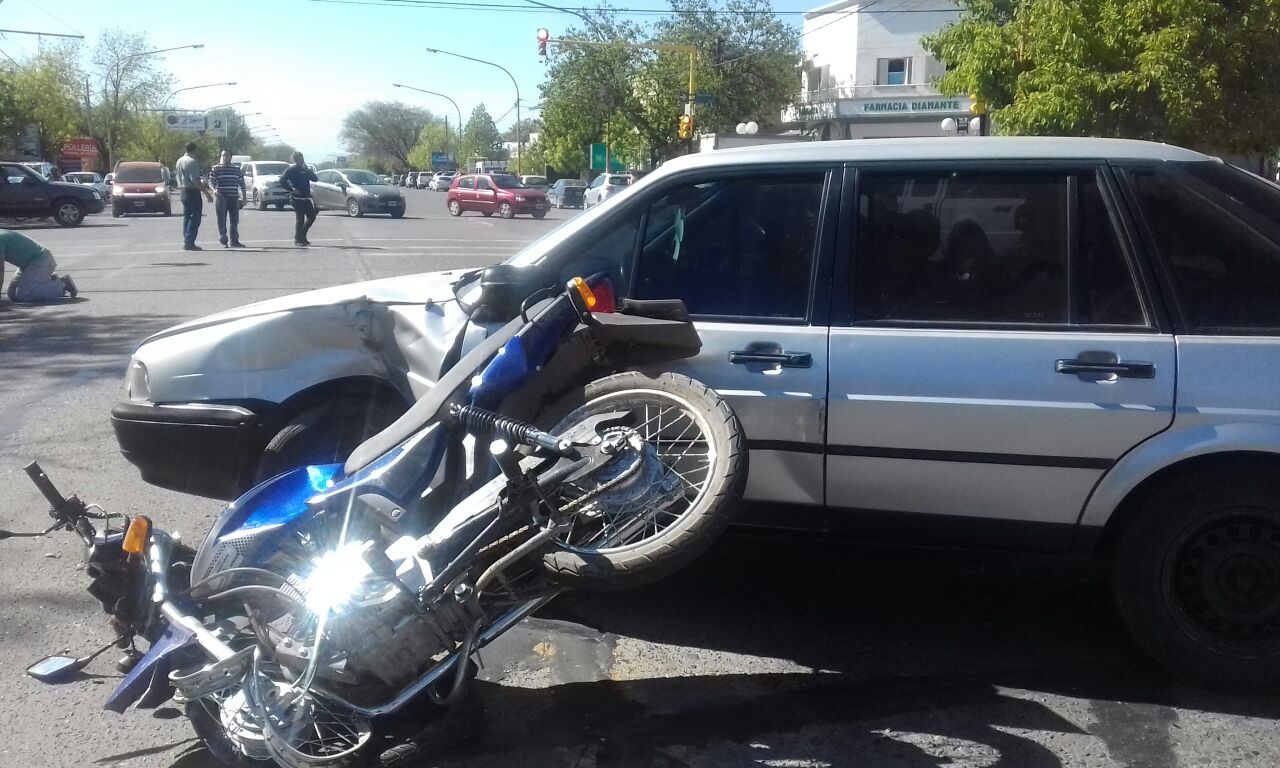 En el segundo accidente de esta mañana un Fiat Duna y una Moto de 110 cc, colisionaron fuertemente en el cruce de las avenidas San Martín y Telles Meneses.